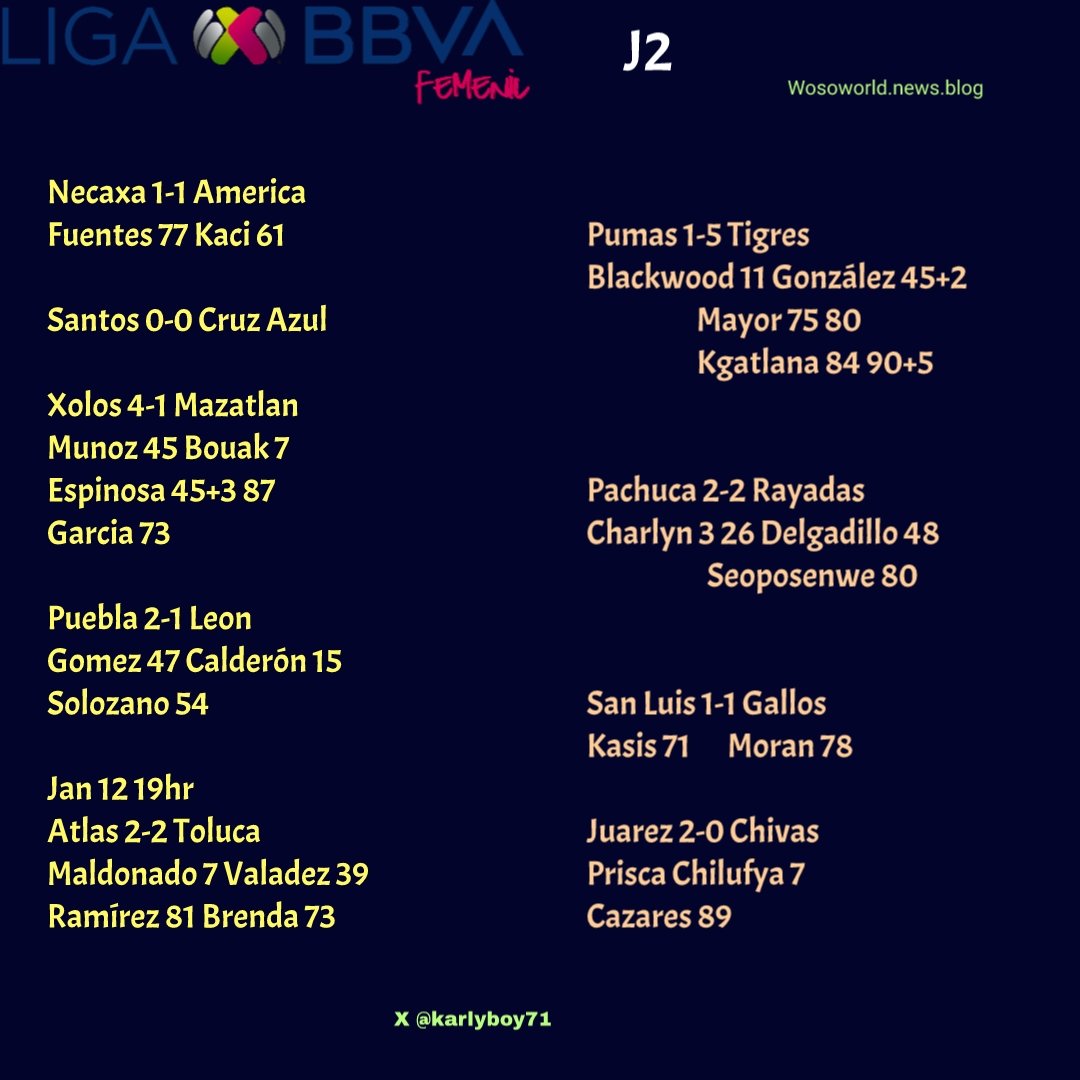 Source : www.footyheadlines.comWosoworld on X: “#LigamxFemenil 🇲🇽 j2 Results Juarez 2 0 Chivas